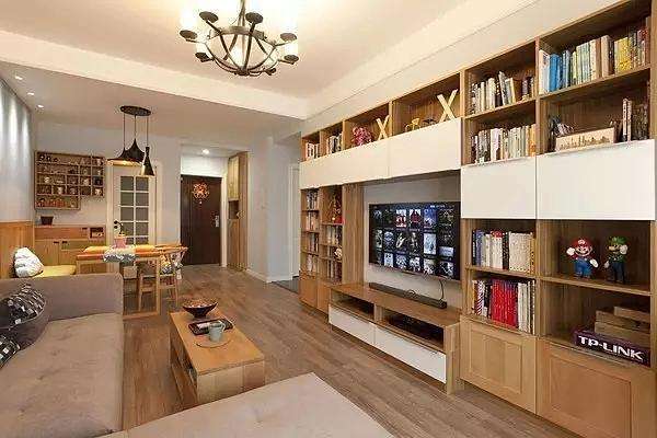 我们都说,过时的是知识,所以携带知识的是书。这三组木制书柜充分利用了角落里的空间,也成为了一堵电视背景墙。这样可以为主人节省很多钱。用书柜布局,也相对简单易行。大概每个来到客厅的人都会对主人的书柜感到惊讶,不仅时尚,而且可以衬托主人的知识。