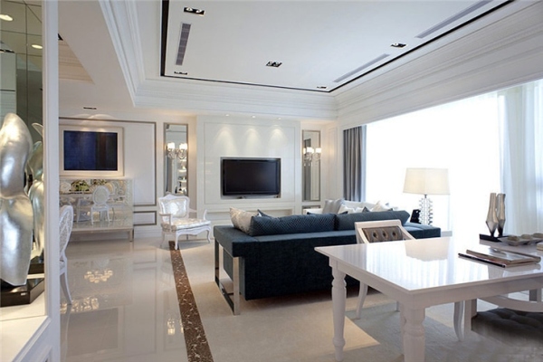 4、欧式风格,这种装饰风格主要是指西方古典风格。典型的欧洲古典风格强调优雅的装饰,丰富的色彩和精致的造型,创造出优雅的装饰效果。欧洲客厅的顶部喜欢使用大灯池,以创造一个华丽的枝形吊灯氛围。